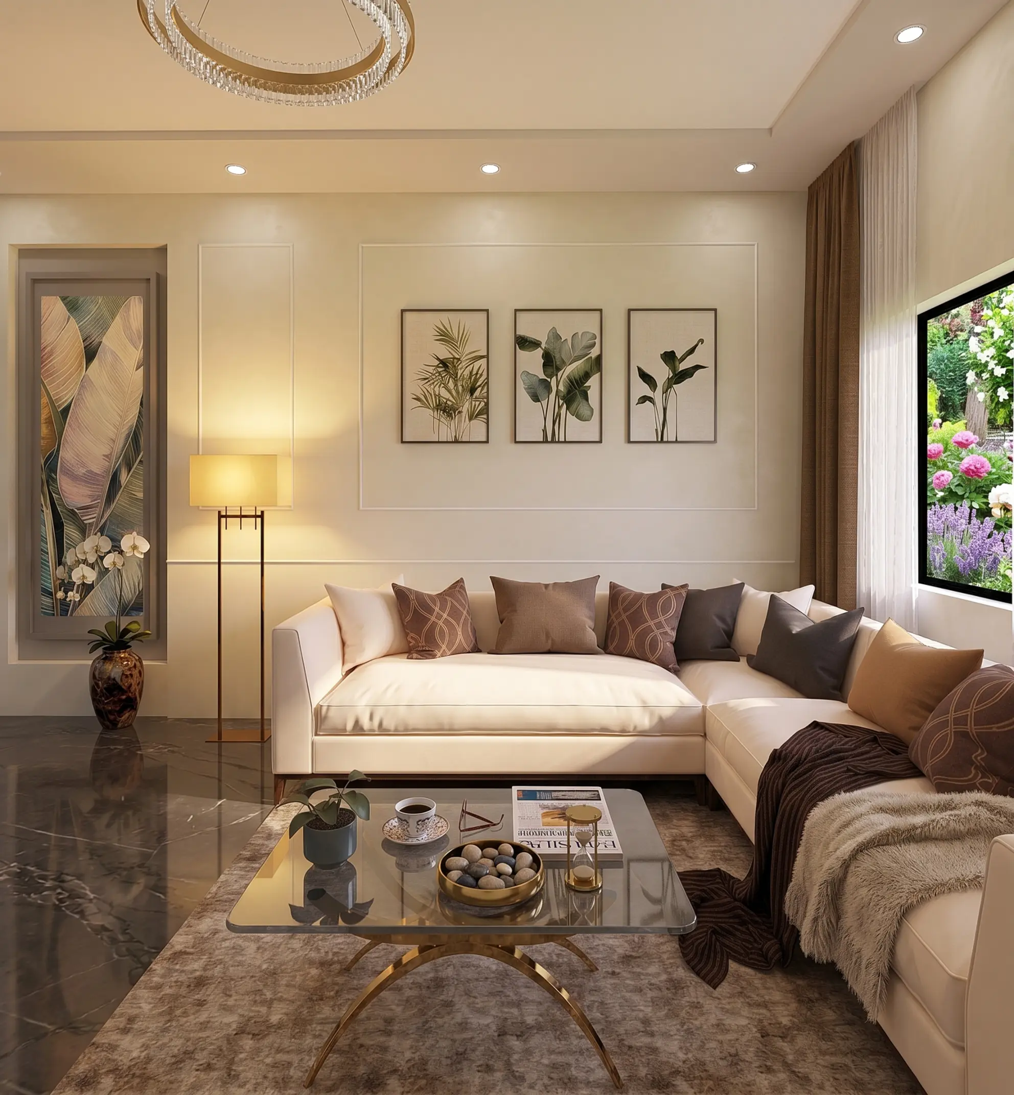 Spacious family living with three private balconies and grand proportions.